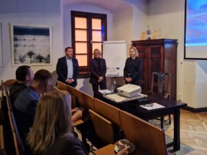 W październiku  2025 r.  uczestniczyliśmy  w  spotkaniu  z przedstawicielami Lokalnej Grupy Działania – Puszcza Knyszyńska, w tym członkowie Rady  i  Zarządu  LGD, wójtowie i  burmistrzowie. Spotkanie odbyło  w Sali Łukowej II  Zamku Królewskiego.  W roli  prelegentów ze strony gminy Niepołomice – Wiesław Bobowski, dyrektor Wydziału Edukacji UMiG w Niepołomicach, – Grzegorz Leszczyński – dyrektor biura LGD Powiatu Wielickiego, – Anna Szeczyk – Wydział Środowiska i Klimatu UMiG w Niepołomicach, – Monika Sendor – prezes Niepołomickiej Spółdzielni Energetycznej. Celem  spotkania